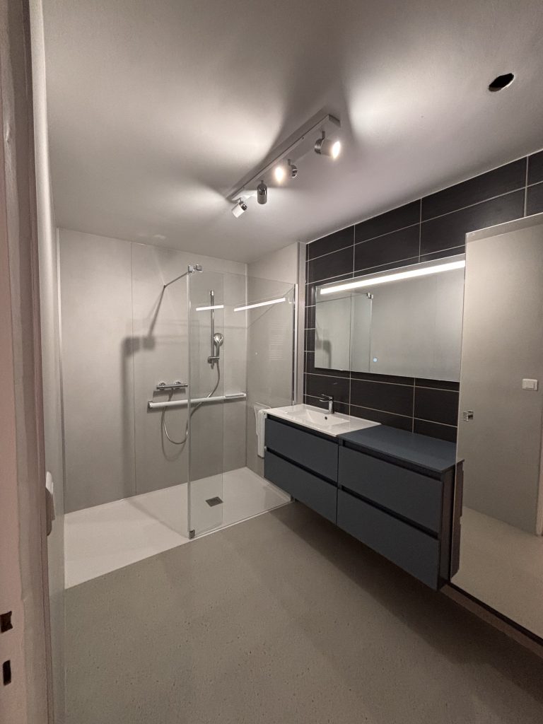 Au départ, c’était un chantier comme un autre : démontage de l’ancienne douche, marteau-piqueur, poussière… Mais très vite, ce projet a pris un autre sens : offrir à notre client un espace où il pourrait se sentir bien, chez lui, sans dépendre de personne.